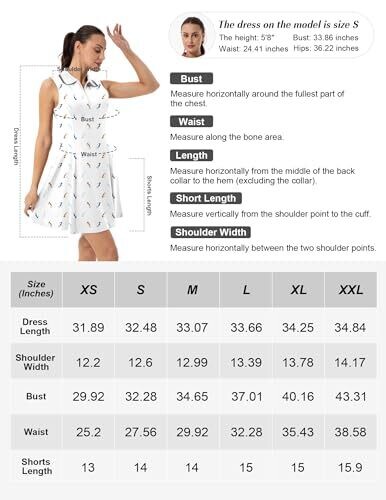 Golf Dress with Built-In Shorts Pockets 2 Piece Set for Women (AU, Alpha, White)