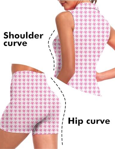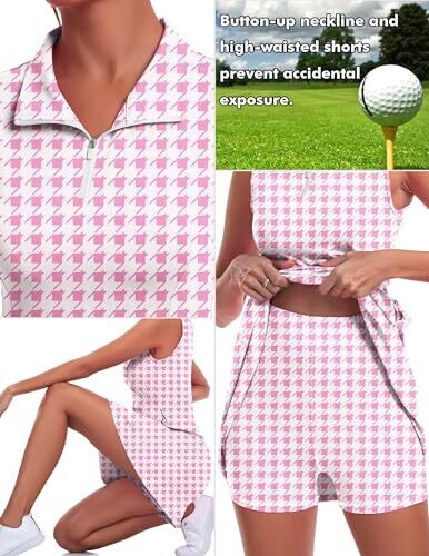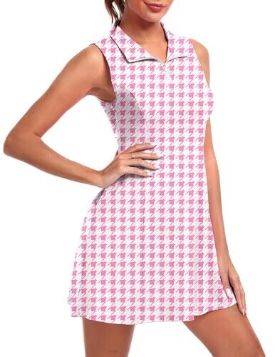 • Fkeep Women's Golf Dress with Pockets and Shorts, 19 Pink Plaid, X-Small