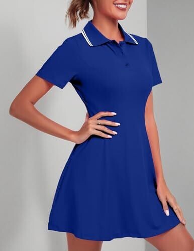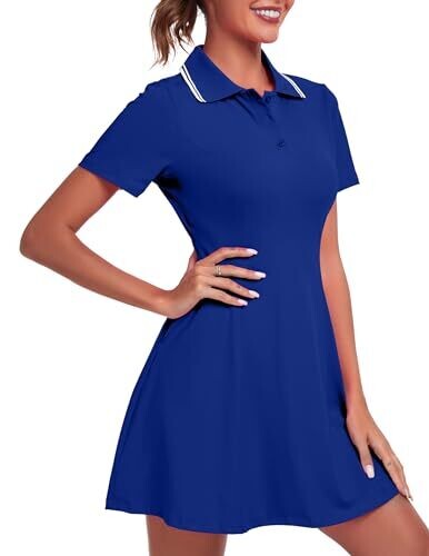 Fkeep Women's Golf Dress with Shorts, Short Sleeve, Pocket, 08 Gem Blue, Medium