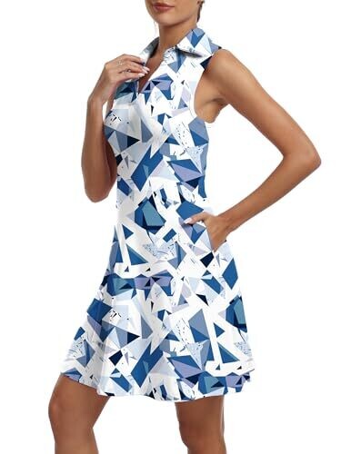 Fkeep Women's Golf Dress with Shorts, V-Neck, 19 White Patchwork, 3X-Large