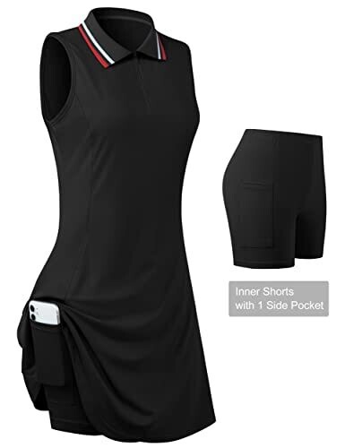 • Elegant sleeveless polo dress with inner shorts for coverage and convenient pockets