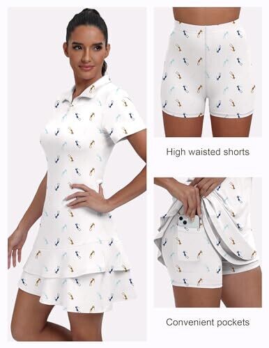 GGOV Womens Two Piece Tennis Golf Dress UPF 50+ Active Athletic Exercise Sports Wear with Pocket and Shorts, 22golf Sports, X-Large.