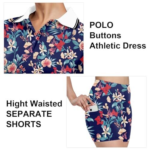 • Ggov Womens Golf Dress with Shorts, Short Sleeve (Navy Flower) Large