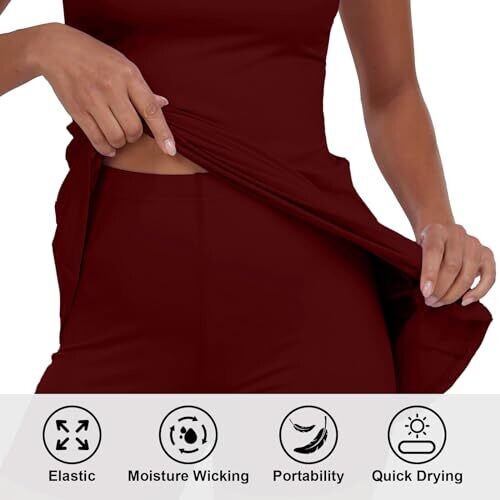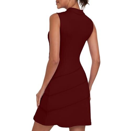 Ggov Womens Golf Two-Piece Dress with Pocket Shorts (Wine Red, Small) UPF 50+