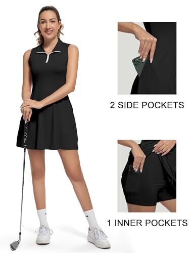 Lovruby Golf Dress with Shorts, Sleeveless Active Wear for Women, Black, Medium