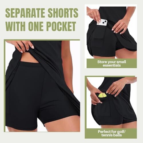 • Inner shorts are separate from the dress and include a pocket for phones, keys, or tennis balls.