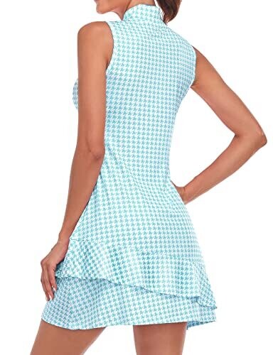 Viracy Golf Dress Sleeveless, Shorts and Pockets, Ruffle, Zip Collar, Blue