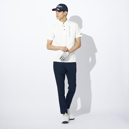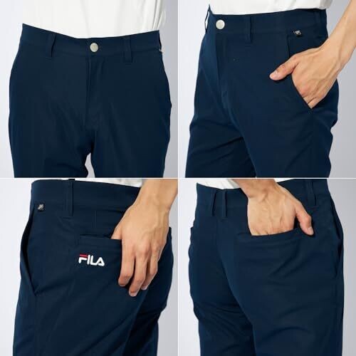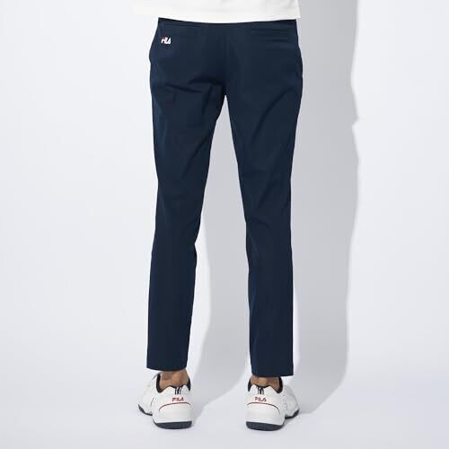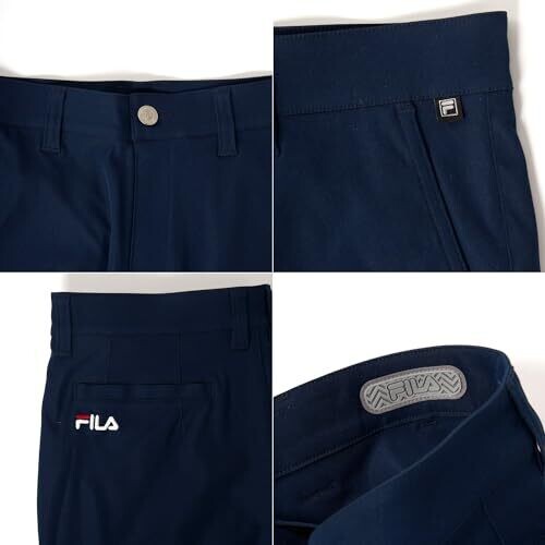 These golf pants are made of solid twill material with stretch and durability. There are slash pockets on the front and a flap pocket on the back for convenient storage of small items. The Fila logo is embroidered on the side of the back pocket.
