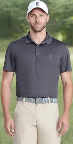- Classic polo silhouette with a clean, versatile asphalt color that matches any golf ensemble.