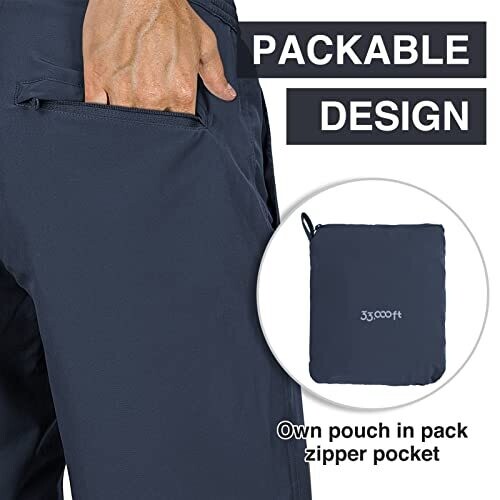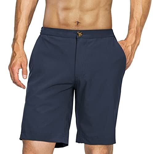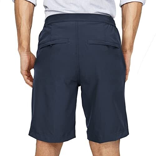 • Versatile 9" casual shorts ideal for hiking, travel, work, and everyday wear in dark blue, with durable zippers and reliable construction.