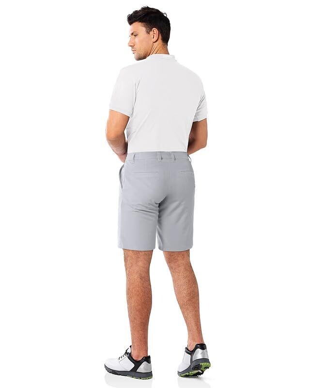 33,000ft Men's Golf Shorts 9" Dry Fit Stretch Golf Short UPF 50+ Lightweight Flat Front 4-Way Stretch Bermuda Shorts Breathable Shorts with 4 Pockets and Tee Holders, Silver 36W x 9L