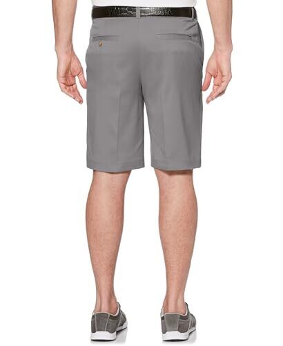 These solid men's golf shorts feature built-in moisture-wicking technology that moves perspiration away from the body to provide a dry fit that's comfortable for all-day wear.