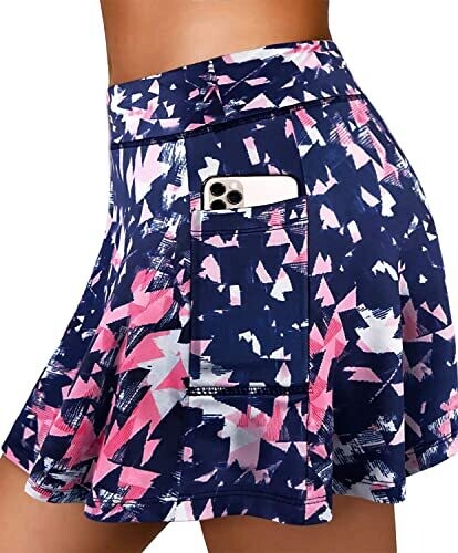 • Fulbelle Golf Skorts for Women Elastic Athletic with Pockets, Large Blue Pattern