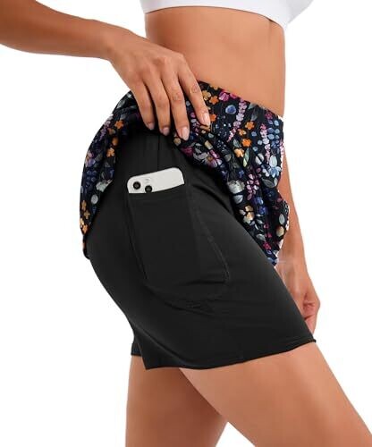 Built-in shorts; 3 pockets (2 side pockets on the skirt and 1 pocket on the inner shorts).