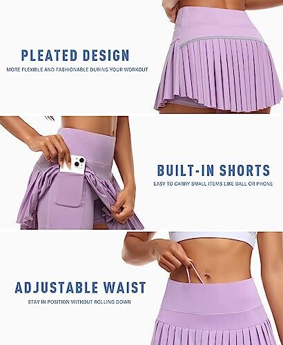 • Joygirl Golf Skort with Pleated Skirt and Shorts High Waisted Light Purple Small