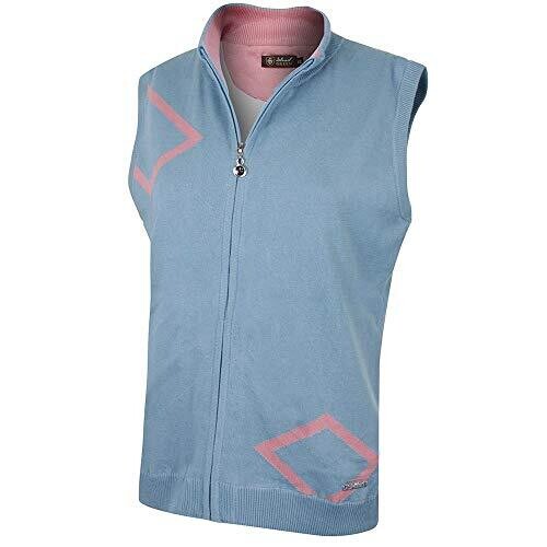 Island Green Golf IGLKNT1754 Layer Zip Up Jacquard Jumper, Duck Egg, Size 16