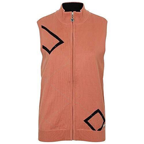 ISLAND GREEN LADIES SLEEVELESS ZIP THROUGH LINED GOLF SWEATER. Fully stretch lining and full length zip. Jacquard knit detail. Thermal, breathable and windproof. 100% Cotton.
