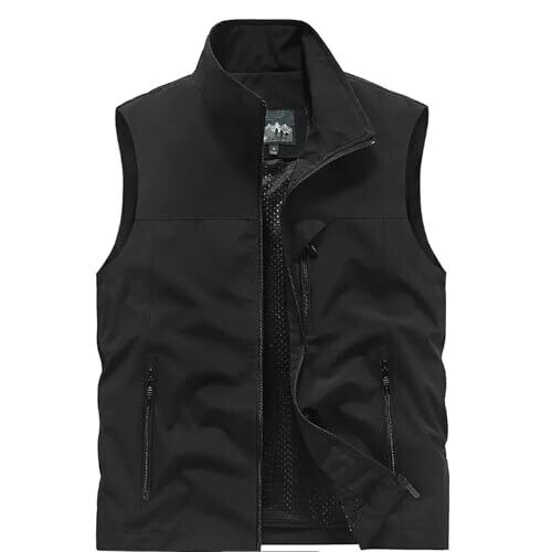 Men's Golf Vest Lightweight Softshell Sleeveless Jacket with Zipper Pockets (AU, Alpha, Large, Regular, Regular, Black)