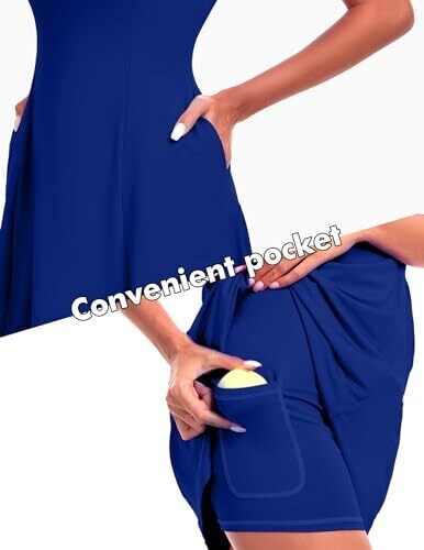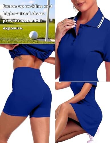 Fkeep Women's Golf Dress with Shorts, Short Sleeve, Pocket, 08 Gem Blue, Medium