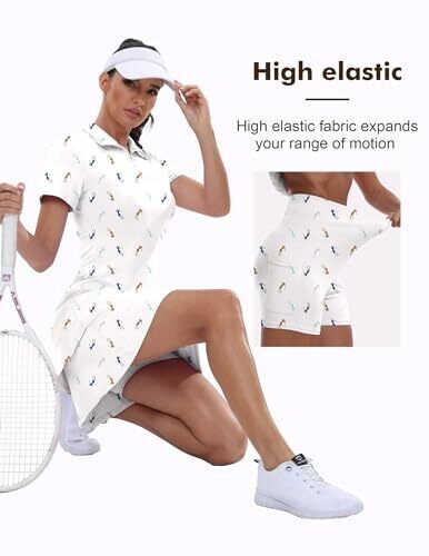 Golf Dress with Built-In Shorts Pockets 2 Piece Set for Women (AU, Alpha, White)