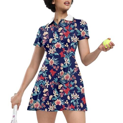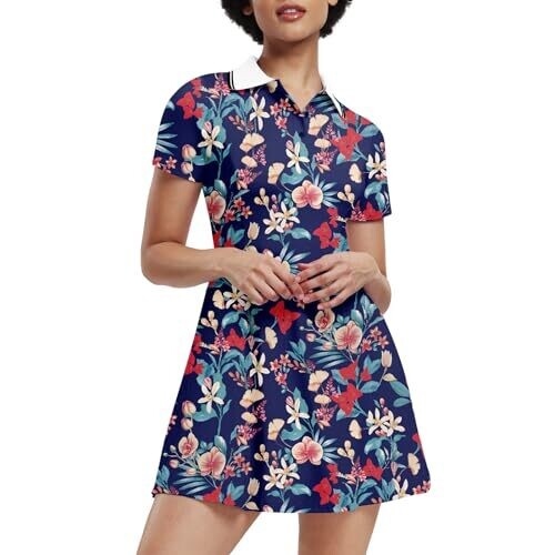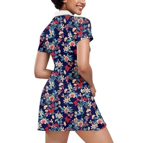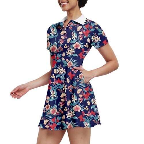 • Ggov Womens Golf Dress with Shorts, Short Sleeve (Navy Flower) Large