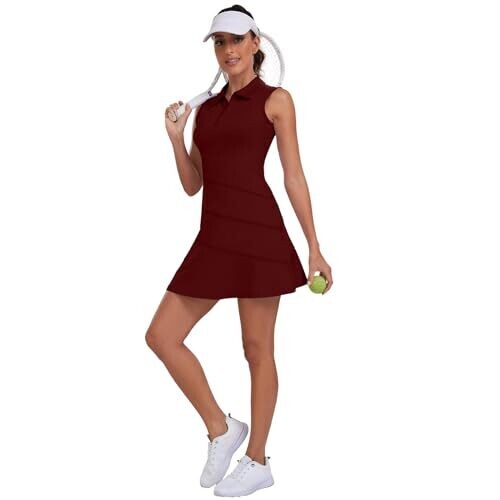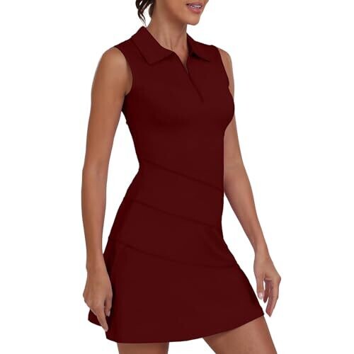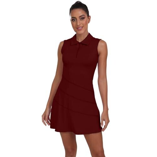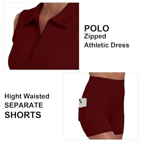 Ggov Womens Golf Two-Piece Dress with Pocket Shorts (Wine Red, Small) UPF 50+