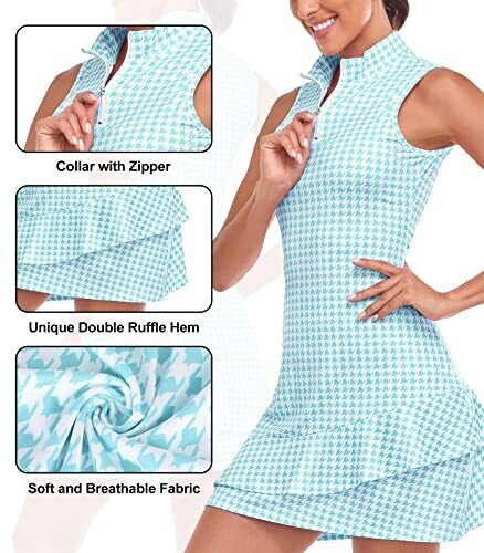 Viracy Golf Dress Sleeveless, Shorts and Pockets, Ruffle, Zip Collar, Blue