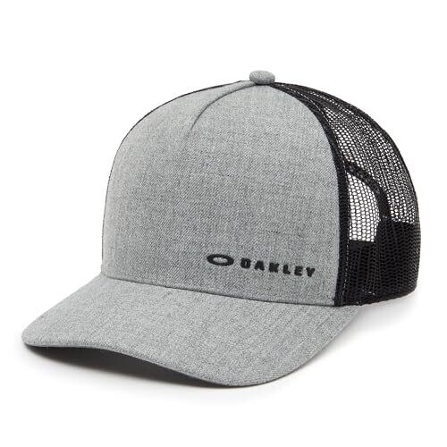 Oakley Men's Chalten Cap HAT, Granite HTHR/Black; Heathered polyester front panel; High-density lock-up logo; 50% polyester/50% cotton jersey knit; Tear away label; Crew neck; 3/4" length raglan sleeves; Item Package Dimension: