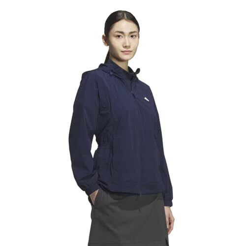 Adidas Golf Women's Water Repellent Full Zip Hoodie, College Navy, L
