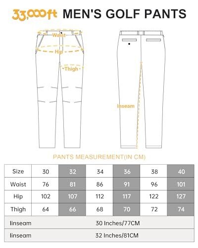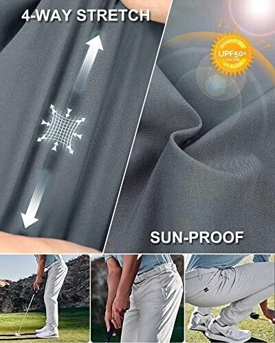 33,000Ft Men's Golf Pants, 5 Pockets, Classic-Fit Stretch, UPF 50+, Grey 34W*30L