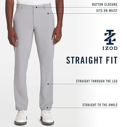 Experience on-course performance with Izod Men’s Golf Swingflex Pant in Peacoat Strt. Swingflex stretch delivers unrestricted movement, while a straight fit offers timeless style from course to everyday wear. Moisture-wicking fabric keeps you cool, and easy-care keeps shape.