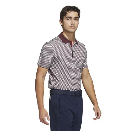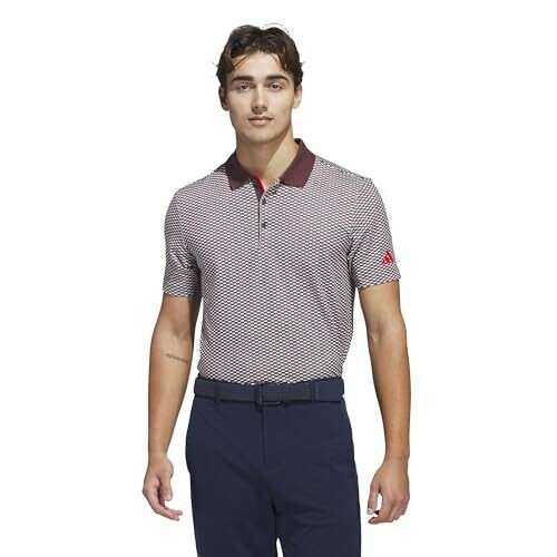 • Adidas Men's Beyond Textured Polo Shirt, Aurora Ruby S25, Large for Golf