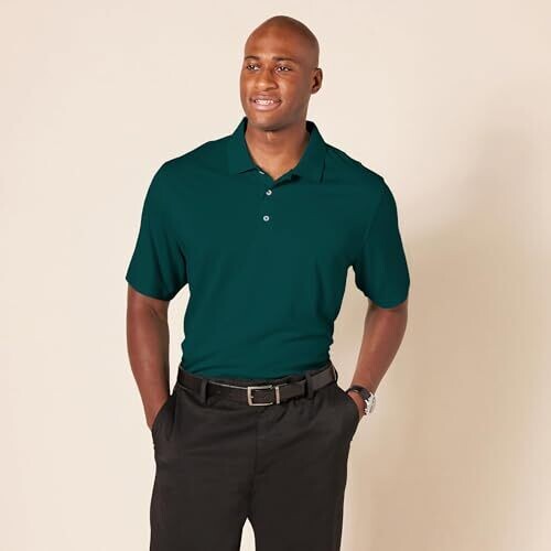- Elevate your game and everyday wear with the Amazon Essentials Men's Regular-Fit Quick-Dry Golf Polo Shirt in Forest Green, XX-Large.