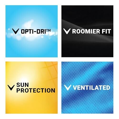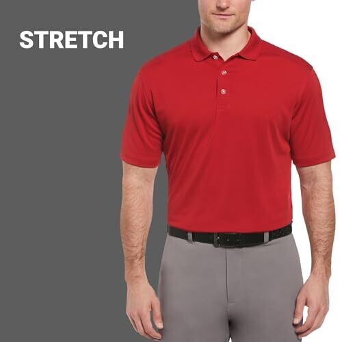 Moisture-wicking technology (Opti-Dri) draws sweat away from the body while maintaining breathability. Ventilated fabric circulates air to transfer heat and keep the wearer cool. Built-in sun protection blocks UV rays from the fabric. Stretch fabric provides a full range of motion for smooth swings. Generous fit with extended sizes (Big & Tall) offers comfortable coverage on a range of body types.
