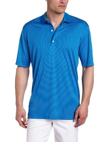 Greg Norman Collection Men's ML75 Fine Line Stripe Polo, Lagoon, XX-Large. Fabric