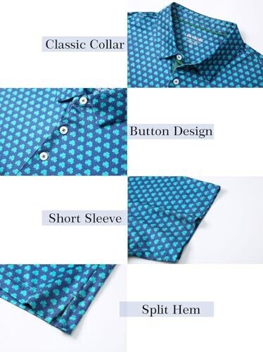 Lenygose Golf Polo Short Sleeve Moisture Wicking Collared (Blue Clover, 5X-Large)