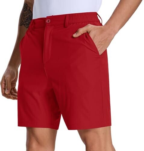 Zalify Mens Golf Shorts 7-9In Lightweight Stretch 4 Pockets Breathable Red 38