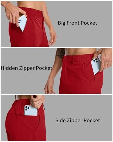Experience lightweight comfort with stretch fabric for all-day mobility on and off the course. Breathable, quick-dry material keeps you cool. Four pockets with secure zip options provide storage, while a 7-9 inch inseam offers versatile golf and outdoor wear in red.