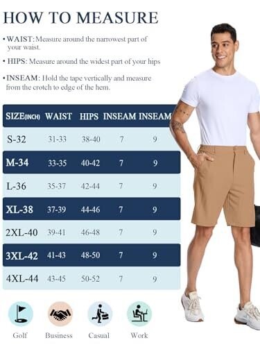 • Strategic 7-9 inch inseam combines coverage with mobility for golf, work, or outdoor activities.