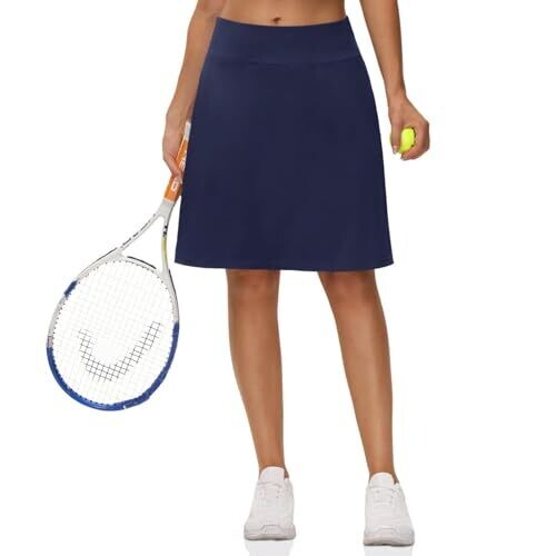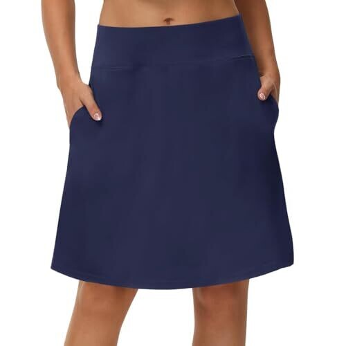 Alpha Women's Knee Length Skorts Golf Modest Athletic Casual (Navy Blue)