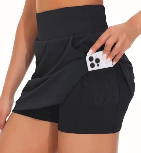 • The Gym People Golf Skort for Women High Waist Lightweight Built-In Shorts 4 Pockets Black