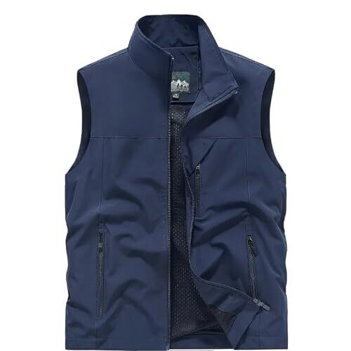 • Men's Golf Vest Lightweight Softshell Sleeveless Jacket with Zippered Pockets (AU, Alpha, Large, Regular, Regular, Navy Blue)